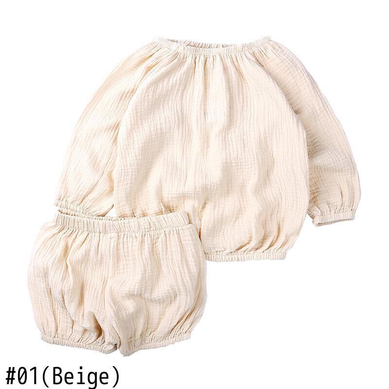 セット ソリッド カラー長袖スリーブTシャツ ショーツ ロング コットン ブルマー ソリッドカラー mi5373617938993