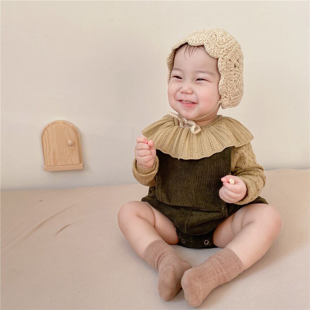 コーデュロイオーバーオール スプリングジャンプスーツ オールインワン ラッフルカラーニットセーター 春物 キッズ mi5346410544671