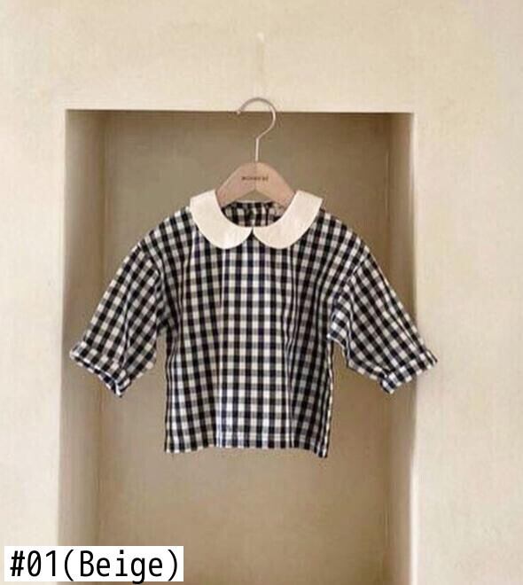 オータム格子柄プリント柄長袖スリーブシャツブラウス トップス ロング コットン 秋物 キッズ mi5368410164256