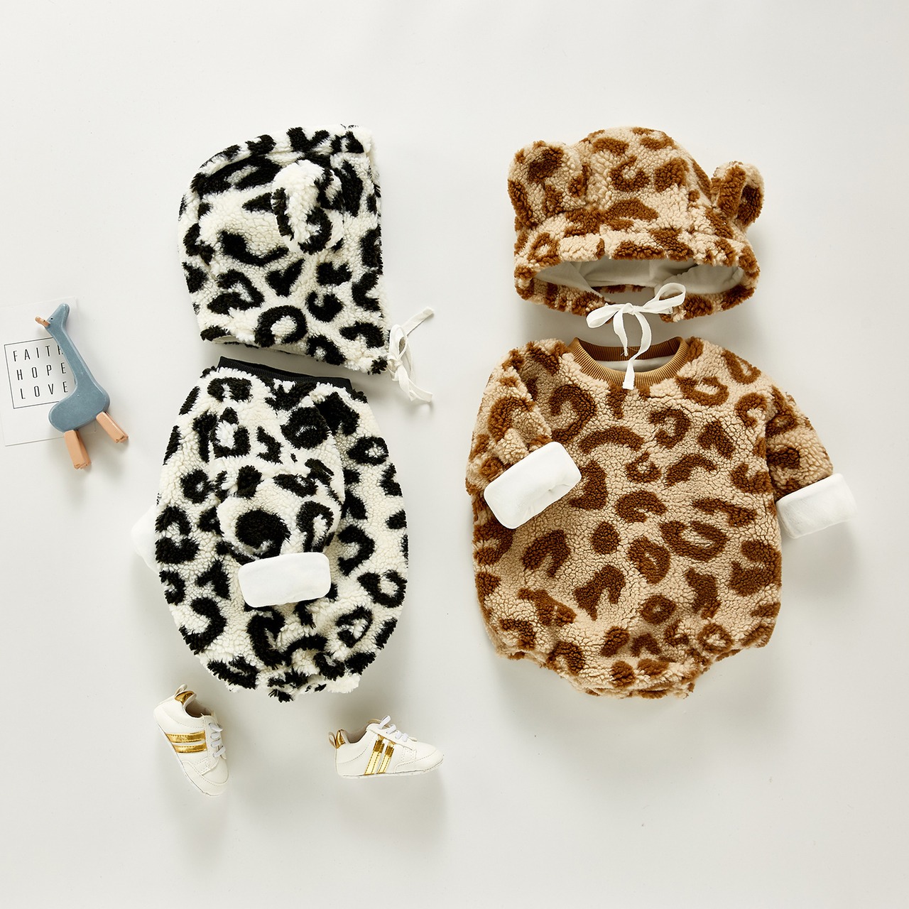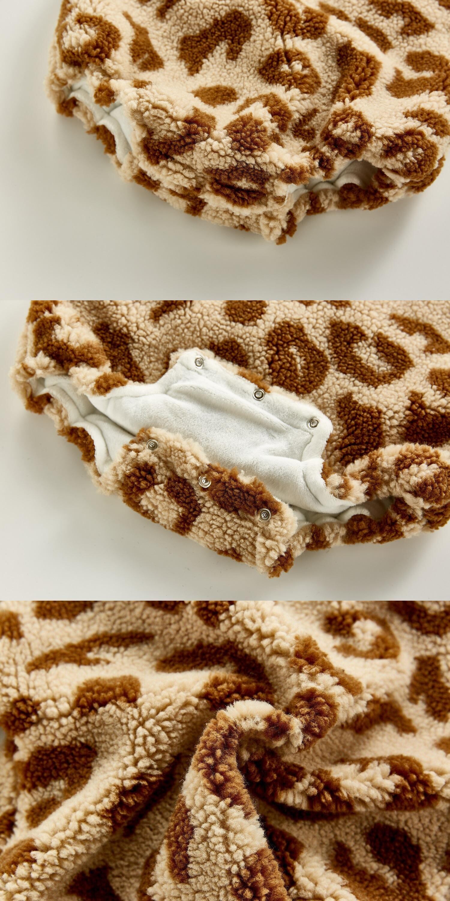 レオパードプリント柄ウィンタージャンプスーツ オールインワン コットン 帽子 冬物 mi5381381070953