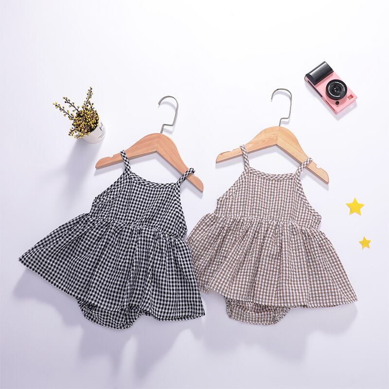 サマー格子柄プリントノースリーブジャンプスーツ オールインワン ドレス 夏物 mi531397890679