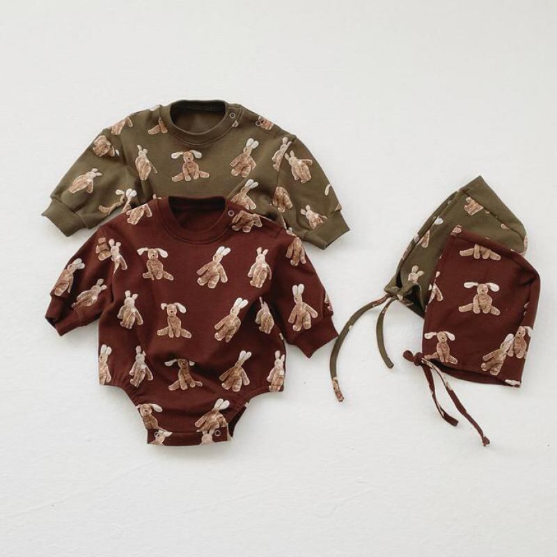 スプリングジャンプスーツ オールインワン プリント柄 帽子 春物 mi5378363249066
