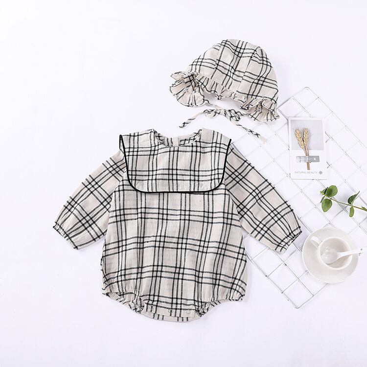 格子柄ロンパース オールインワン フード レッド コットン mi5378163383878