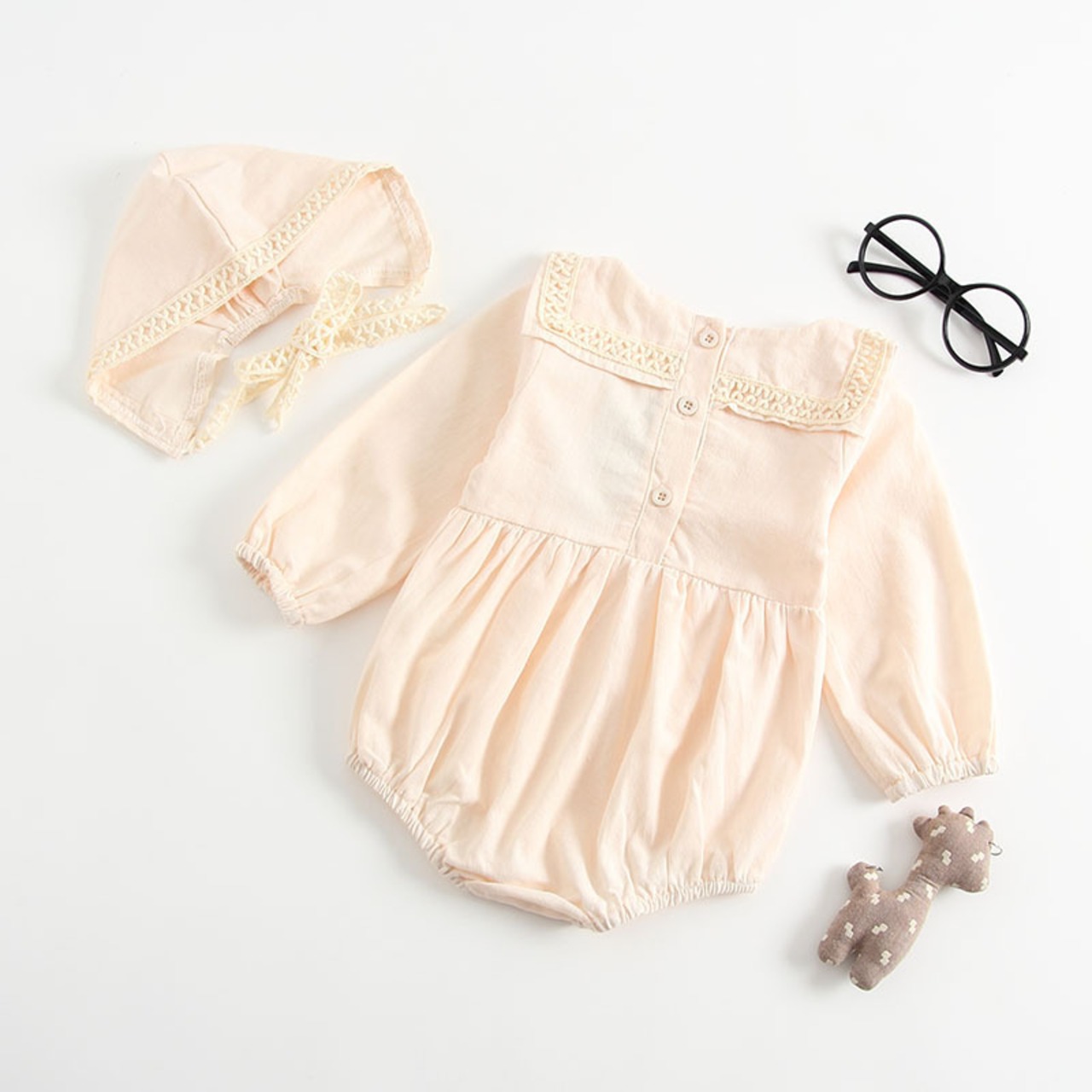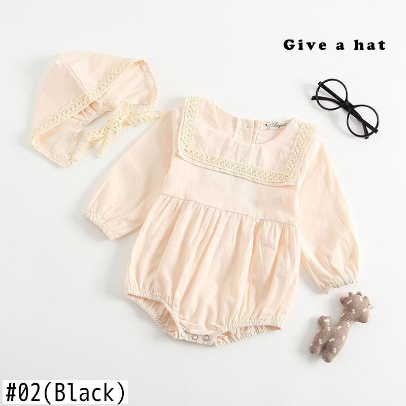 サマーオータムロンパース オールインワン 長袖スリーブセット ロング コットン 帽子 夏物 秋物 mi5393138637485