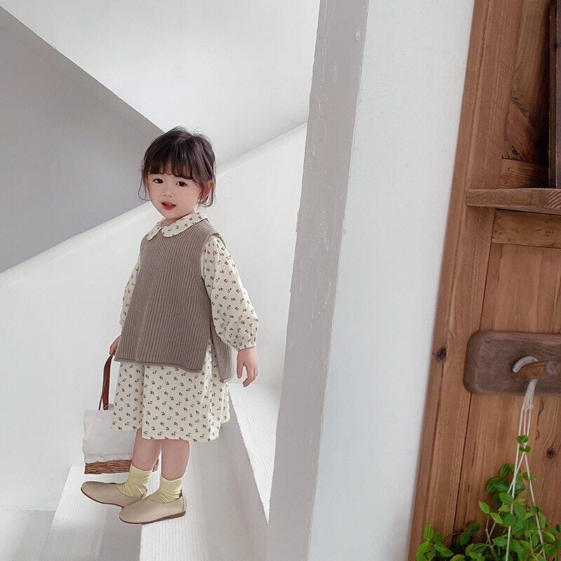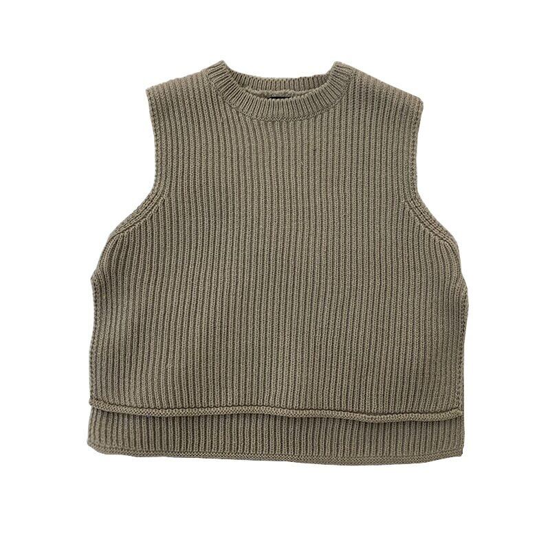 スプリングソリッド ノースリーブニットセーター プルオーバー トップス 春物 キッズ ソリッドカラー mi5336151677343