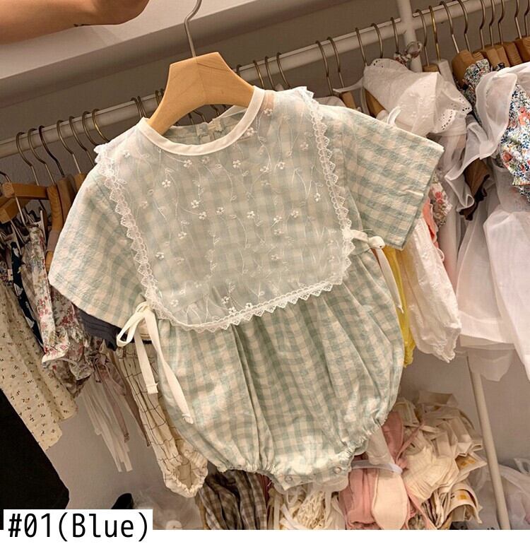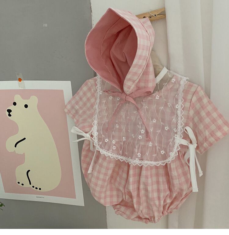 サマー格子柄セット ジャンプスーツ オールインワン コットン 帽子 夏物 mi5393043202999