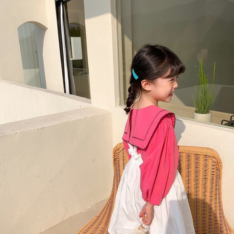 カラーブラウス 長袖スリーブシャツトップス ソリッド ロング コットン キッズ ソリッドカラー mi5379173782037