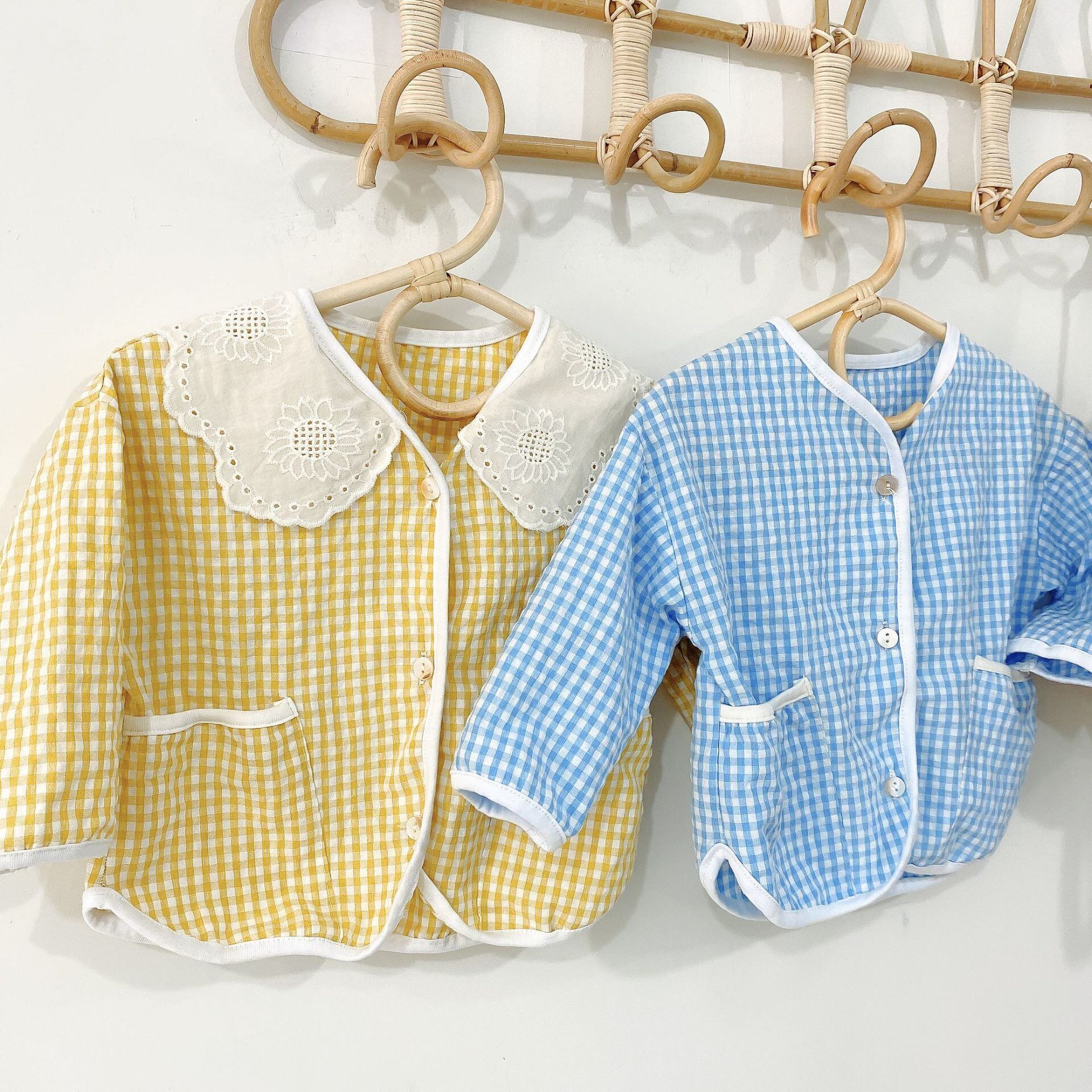 レースカラージャケット コート オータム長袖スリーブアウター格子柄トップス ロング コットン 秋物 キッズ mi5335650991264