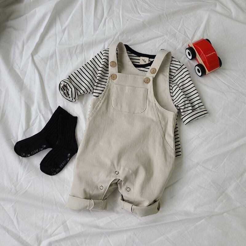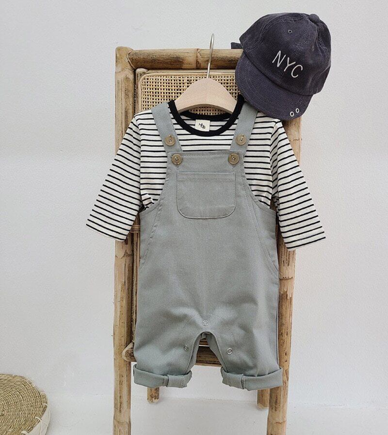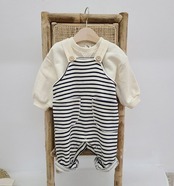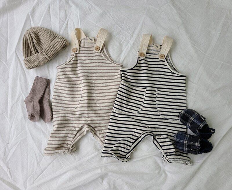 オータムストライプノースリーブロンパース オールインワン ジャンプスーツ オールインワン パンツ オーバーオール 秋物 mi5333048740244