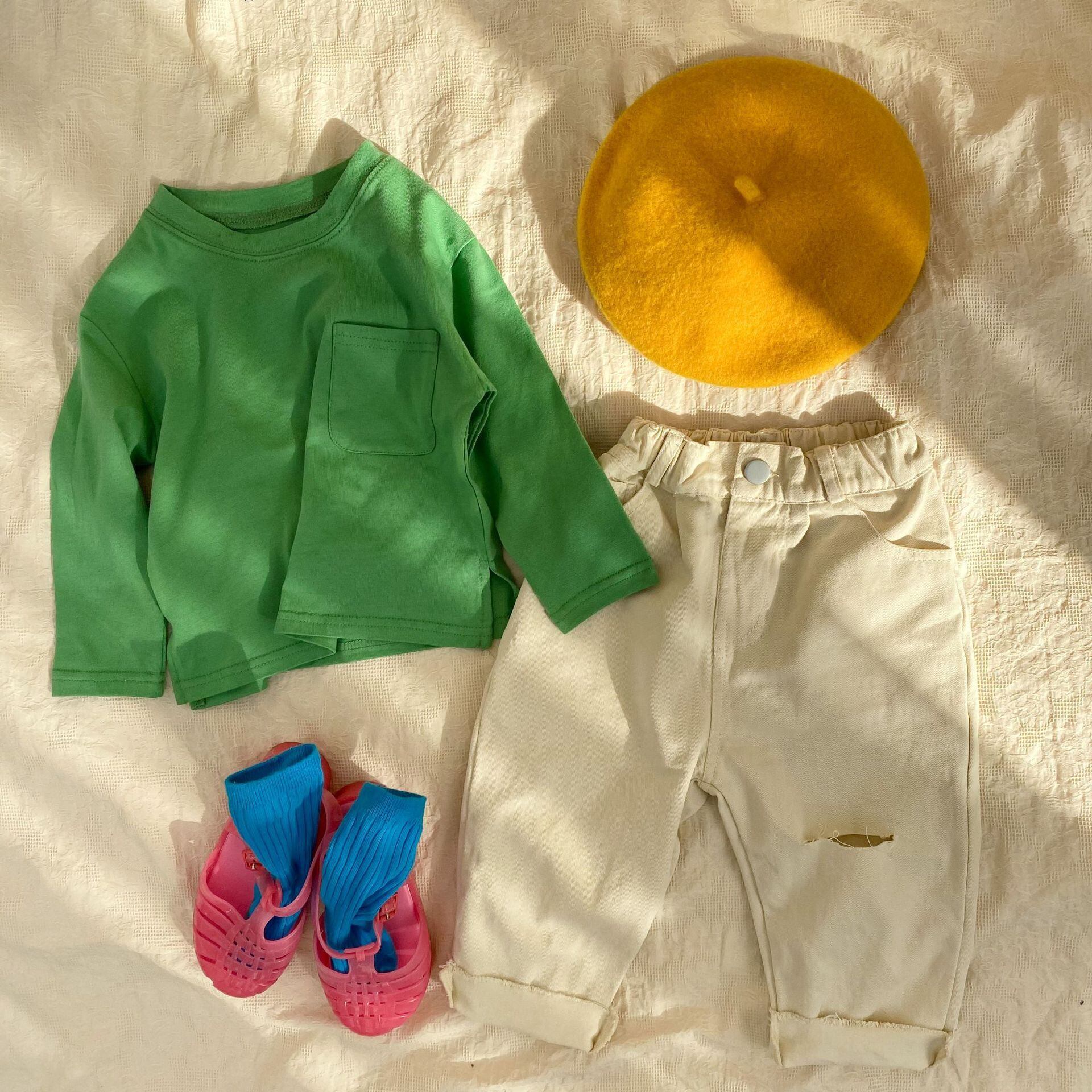 シャツスプリングオータムトップス 長袖スリーブソリッド ロング コットン 春物 秋物 キッズ Tシャツ ソリッドカラー mi537570236187