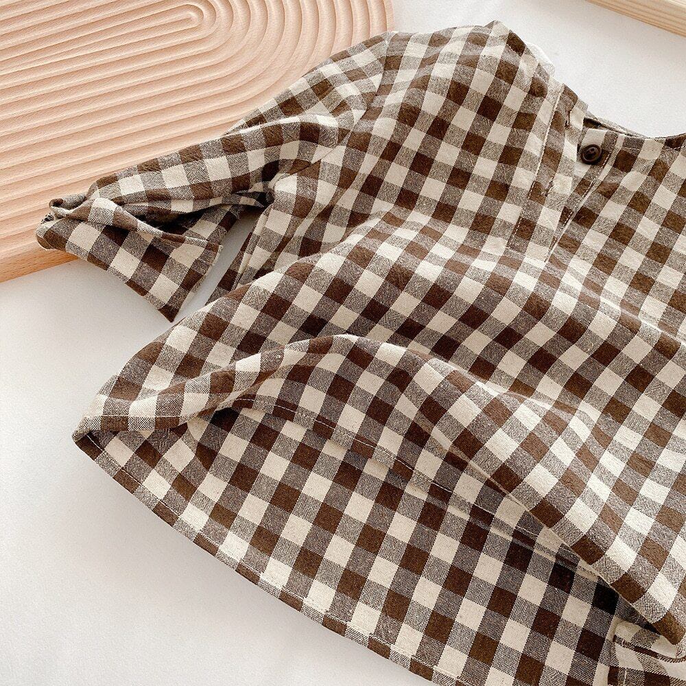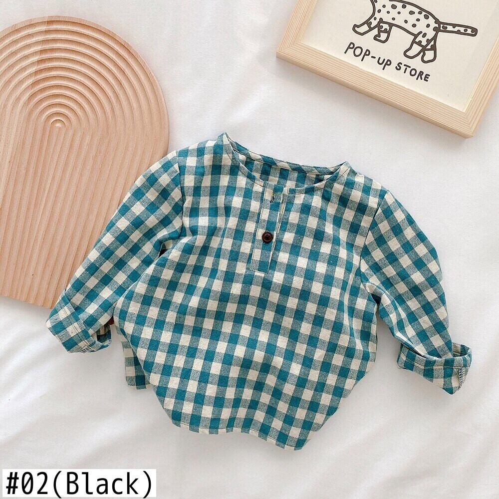 シャツ 格子柄長袖スリーブシャツルーズトップス ロング コットン キッズ Tシャツ mi533415884687