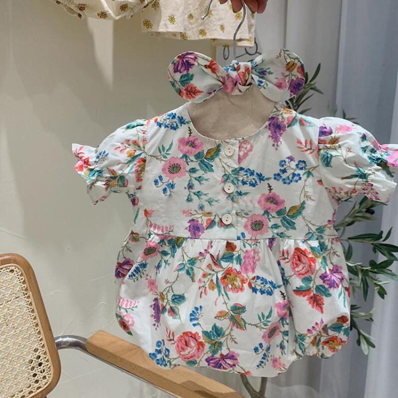 フローラル半袖スリーブジャンプスーツ オールインワン ショート コットン ハーフスリーブ 大人ガーリー スウィート キュート カジュアル キッズ 花柄 mi5353445136752