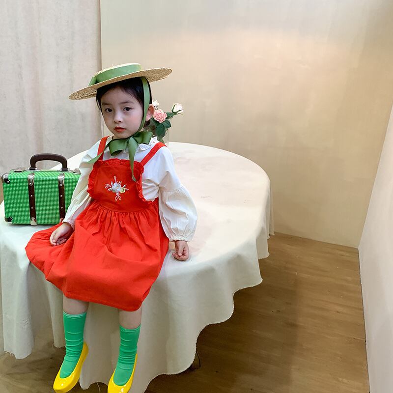 スプリング刺繍ドレス ワンピース セット シャツ コットン 春物 キッズ mi5361622341853