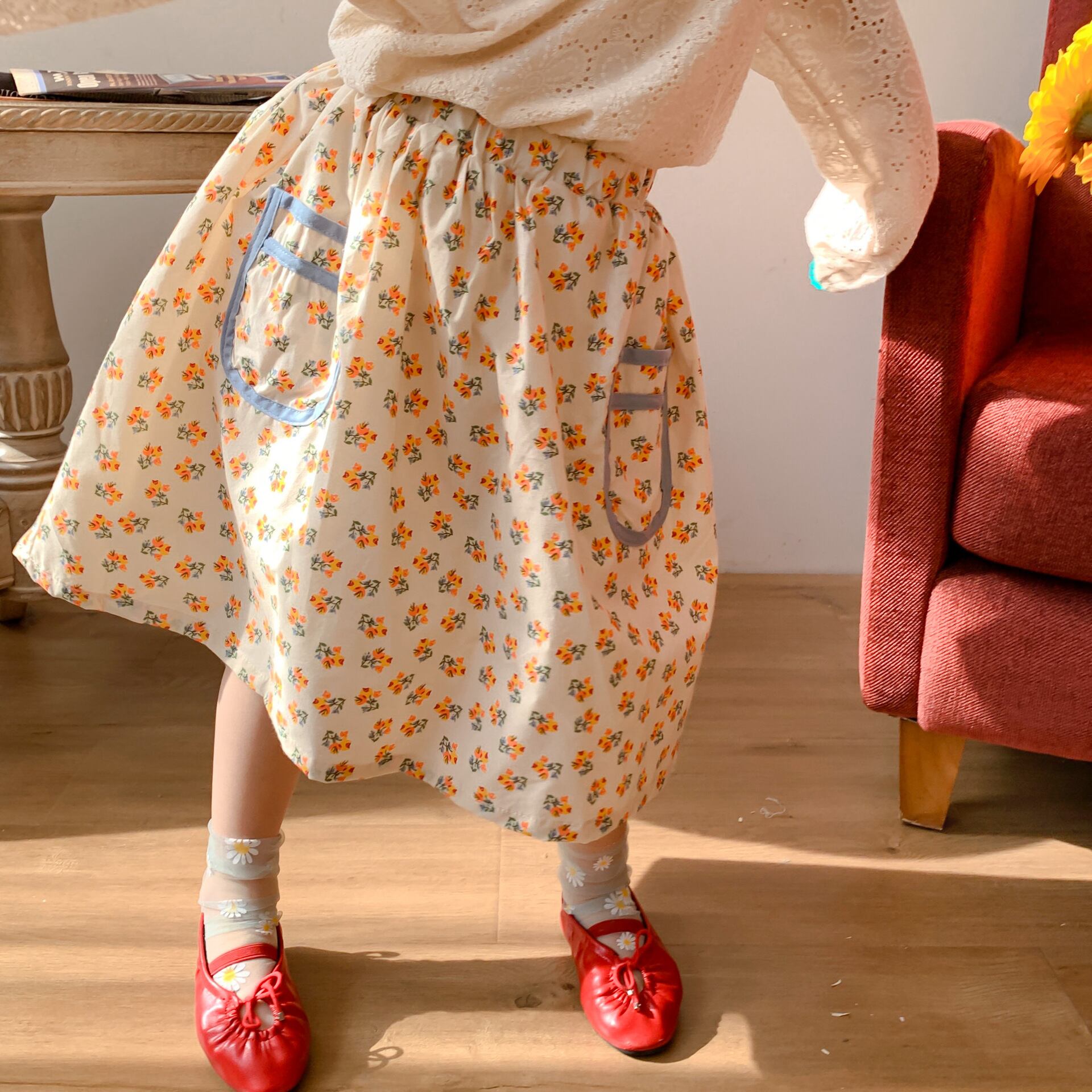 スカート スプリングFlowerデザイン プリント柄ロング 春物 キッズ フラワーデザイン mi5342589304162