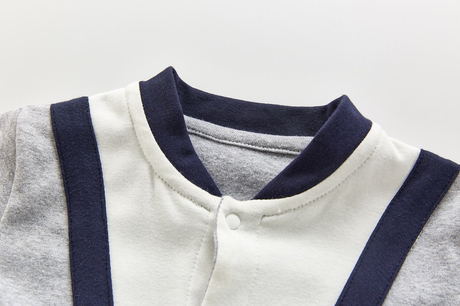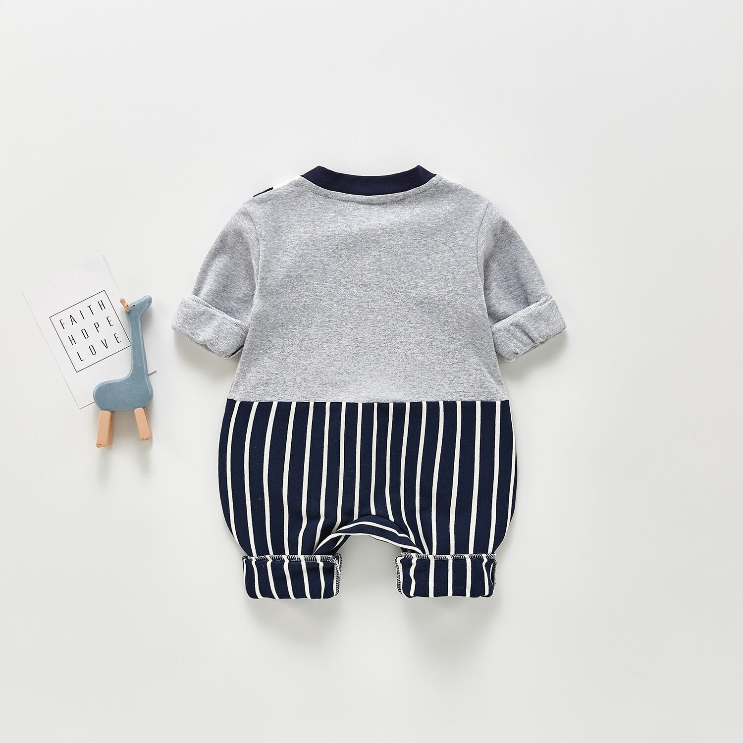 スプリング長袖スリーブストライプロンパース オールインワン ロング コットン 春物 mi5318718110627