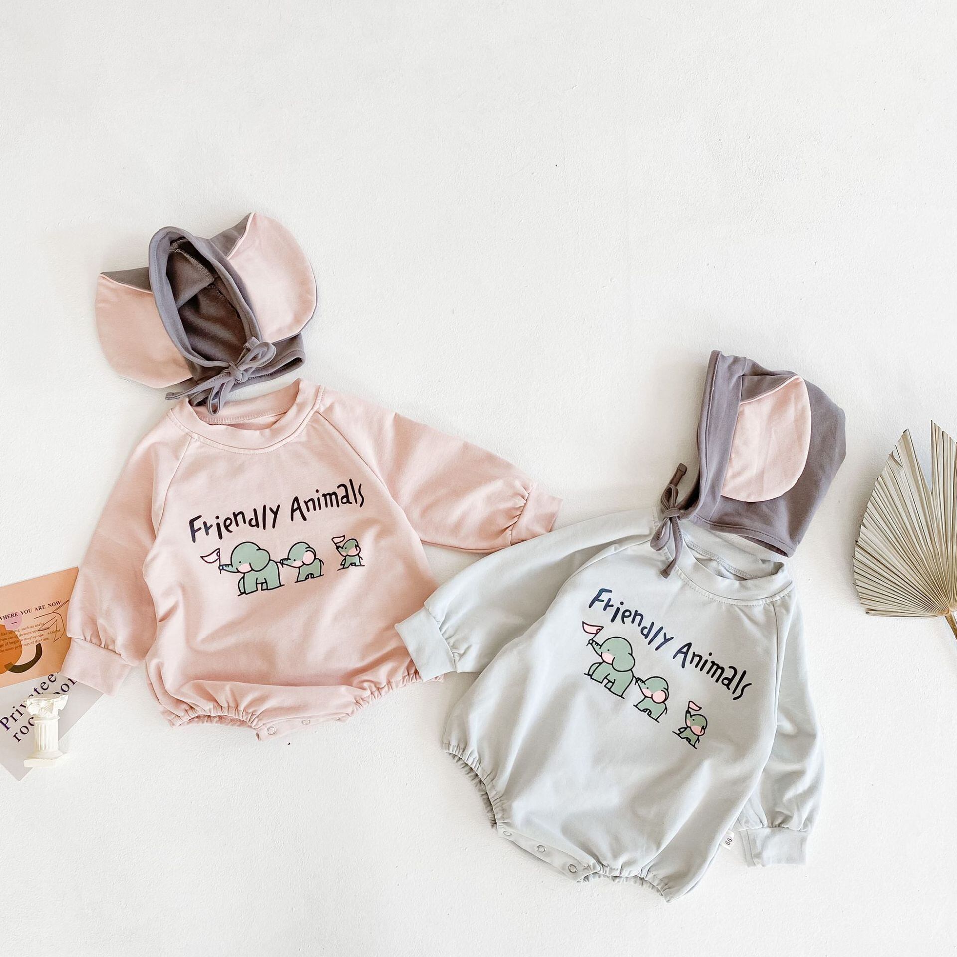 オータムプリント柄長袖スリーブジャンプスーツ オールインワン ロング コットン 帽子 秋物 mi538457722954