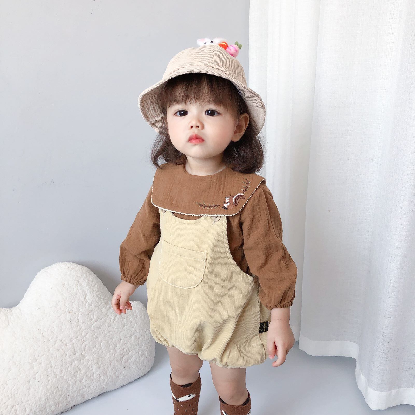 オータムセット 長袖スリーブコーデュロイオーバーオール ジャンプスーツ オールインワン ロング レッド 刺繍 秋物 mi531052353305