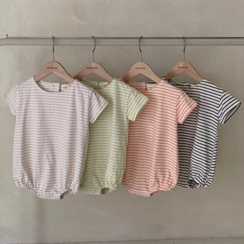 半袖スリーブサマーストライプジャンプスーツ オールインワン ショート コットン ハーフスリーブ 夏物 mi5385984036518