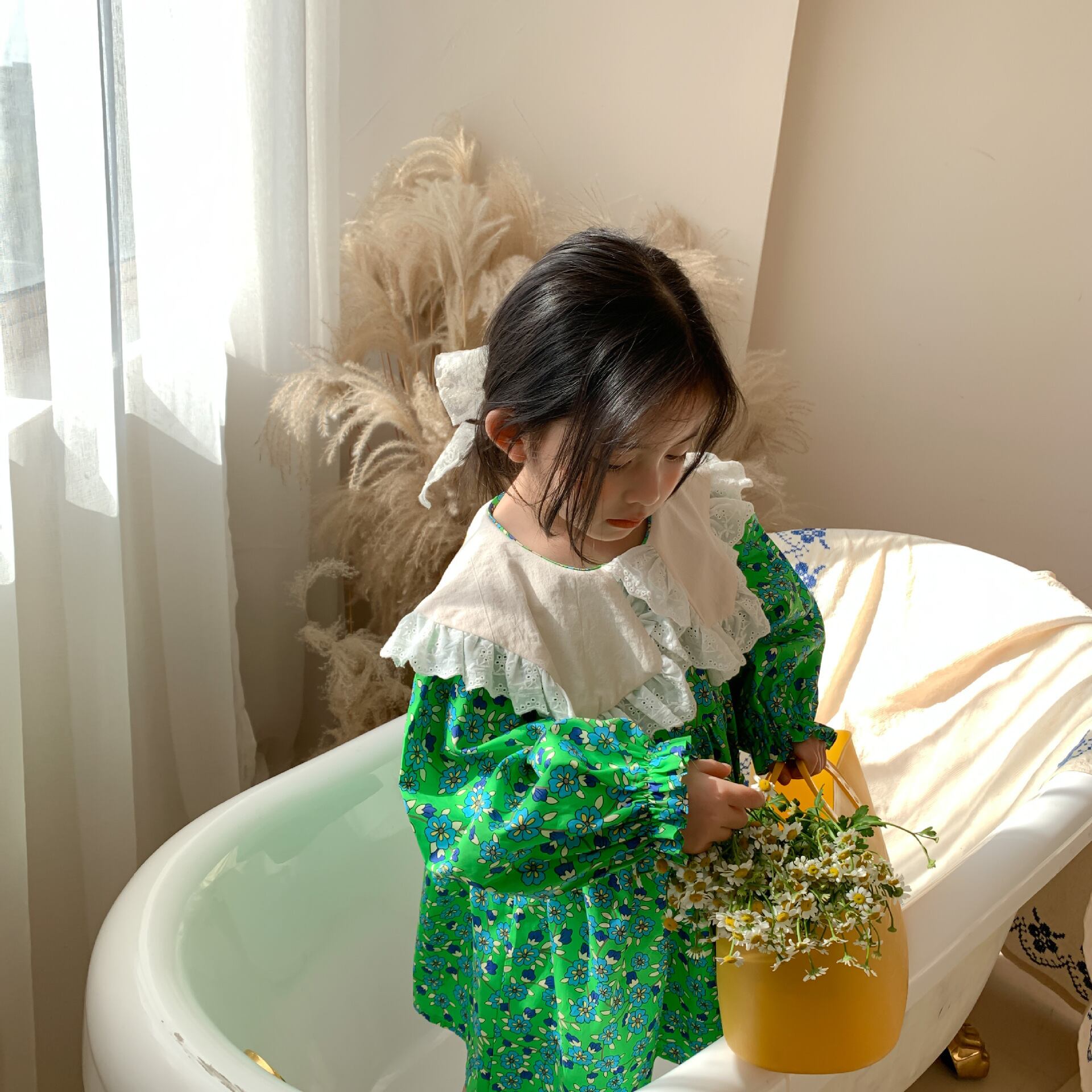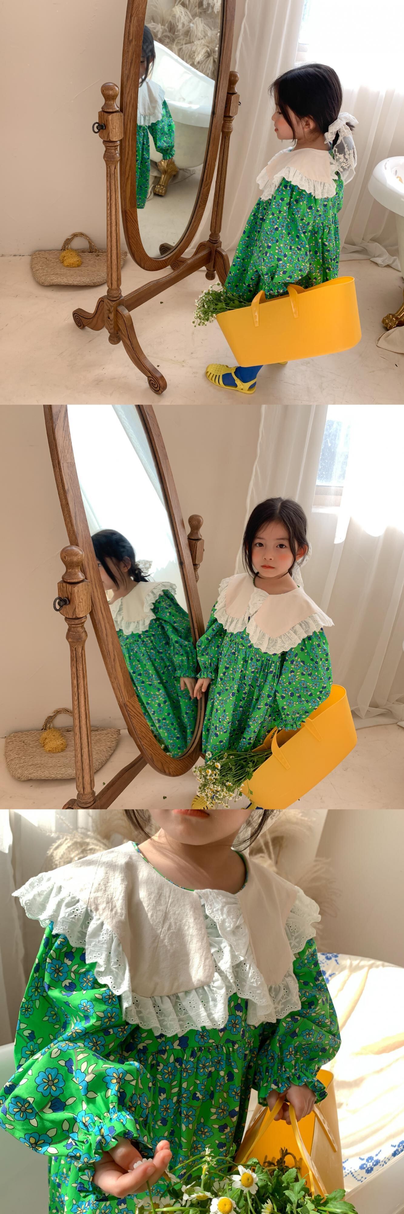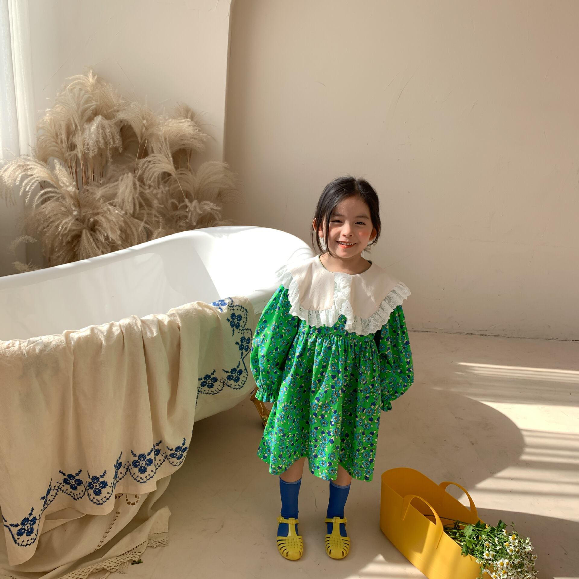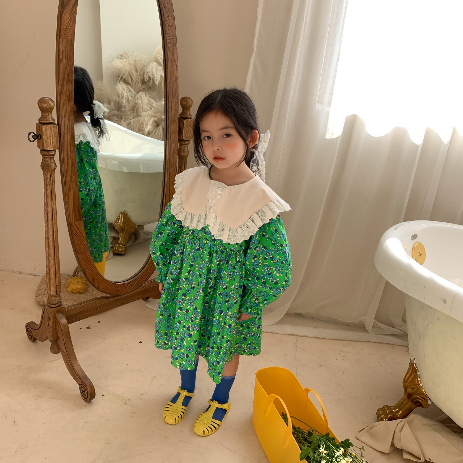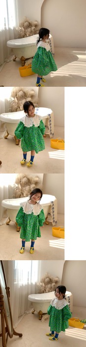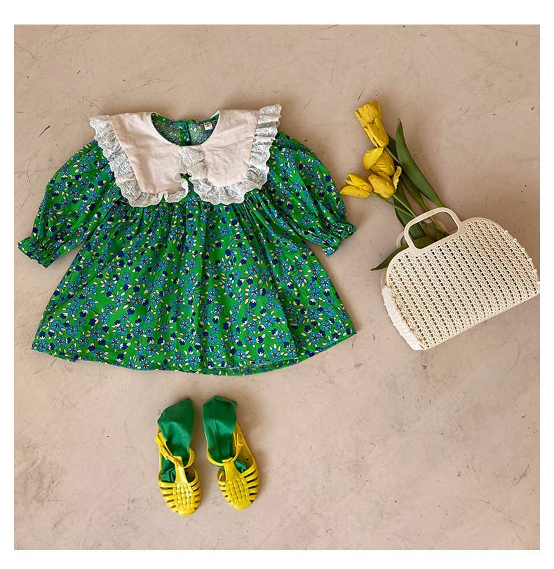 スプリング長袖スリーブフローラルドレス ドレス ワンピース レースカラー ロング コットン 春物 キッズ 花柄 mi5338467519339
