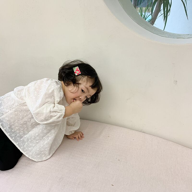 スプリングホワイトレースブラウス ソリッド カラートップス シャツ 春物 キッズ ソリッドカラー mi5345074770204