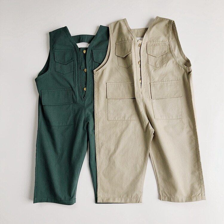 スプリングノースリーブポケットルーズオーバーオール ジャンプスーツ オールインワン 春物 キッズ mi5352910158710