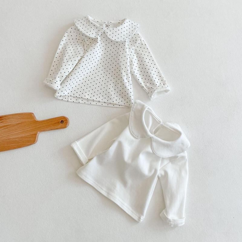 スプリング長袖スリーブソリッド カラーシャツベーシックトップス ロング コットン 大人ガーリー スウィート キュート カジュアル 春物 キッズ ピュア ソリッドカラー mi5368307497220