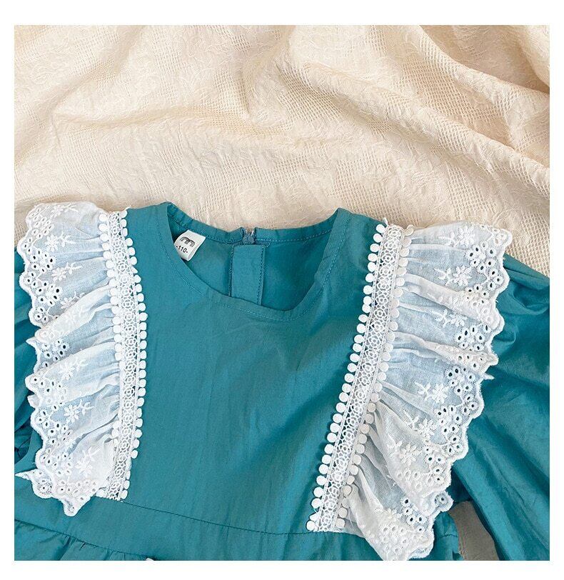 ドレス スプリング長袖スリーブヴィンテージグリーン ロング 春物 キッズ ビンテージ mi5391437635363