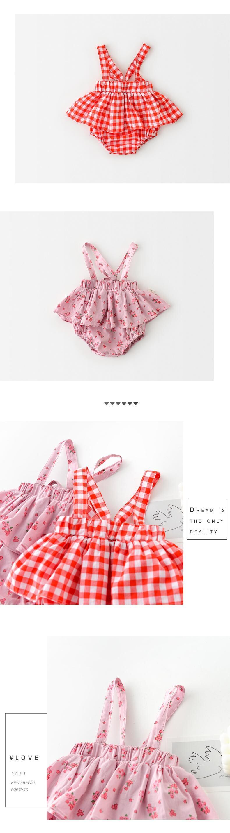 ノースリーブオーバーオール 格子柄ジャンプスーツ オールインワン フローラルドレス キッズ 花柄 mi5393347949436