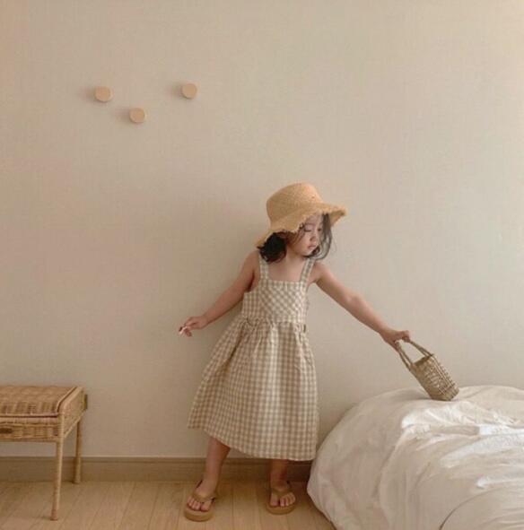 スプリング格子柄ドレス サマーノースリーブドレス ワンピース コットン 春物 夏物 キッズ mi5391835237346