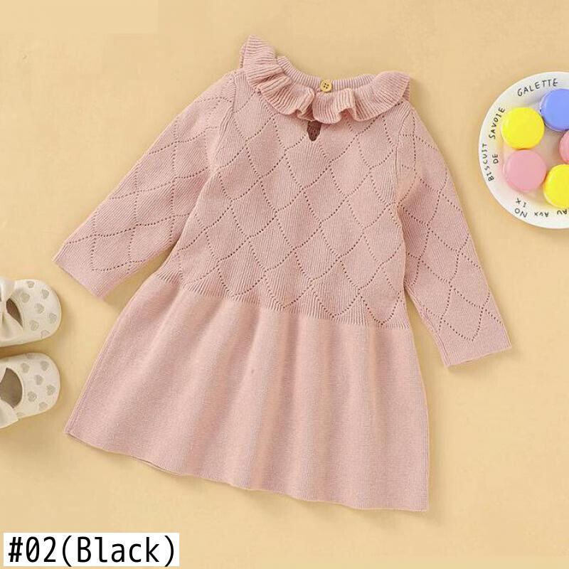 カラーソリッド セーター ドレス ワンピース オータムラッフルニット 秋物 キッズ ソリッドカラー mi537538318831