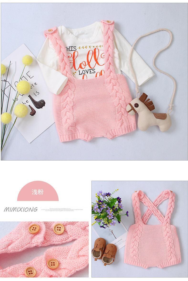 オーバーオール ニットボタンセーター ソリッド ロンパース オールインワン ショーツ キッズ ブルマー ソリッドカラー mi5392394740087