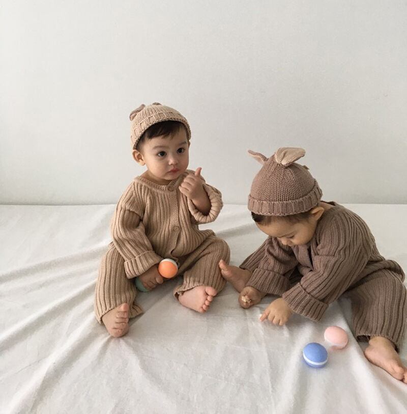スプリングジャンプスーツ オールインワン ソリッド カラー長袖スリーブニットロンパース オールインワン セーター ロング 春物 キッズ ソリッドカラー mi5342235818304