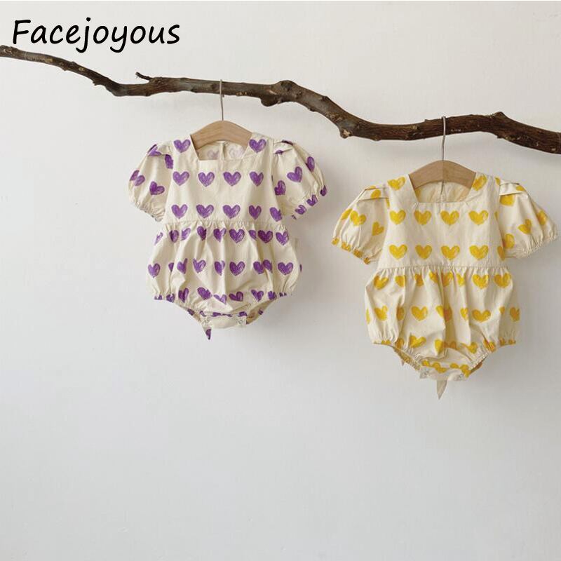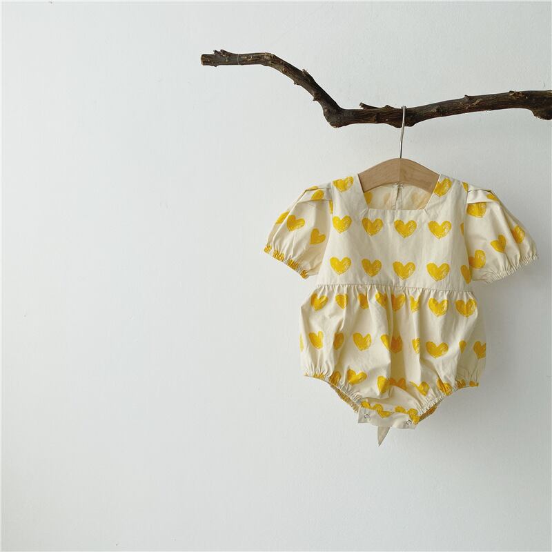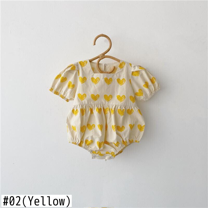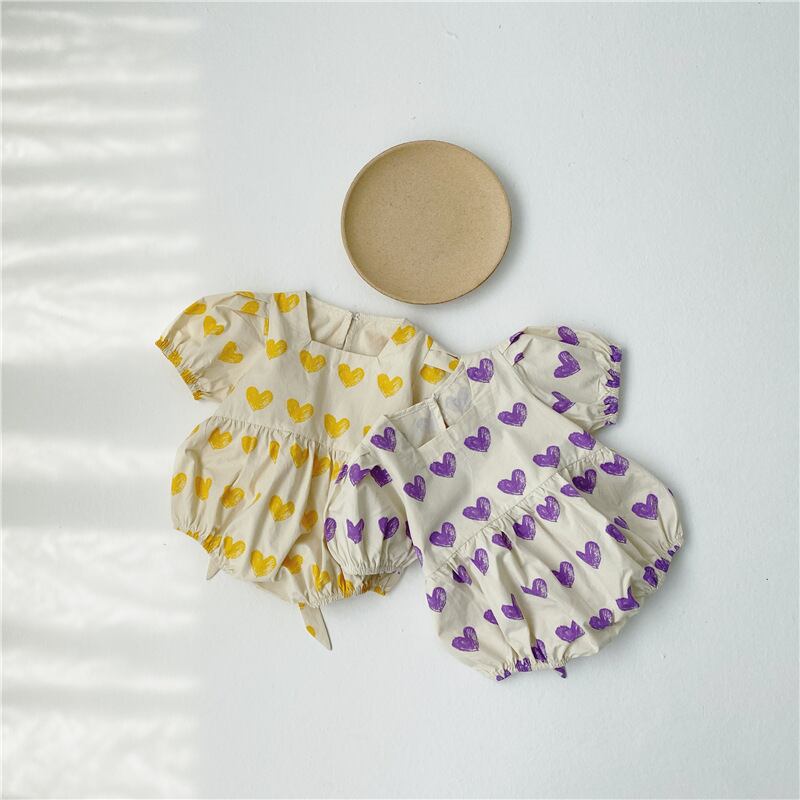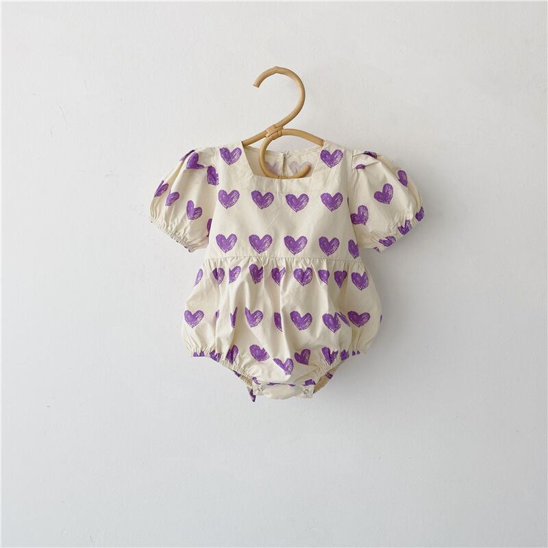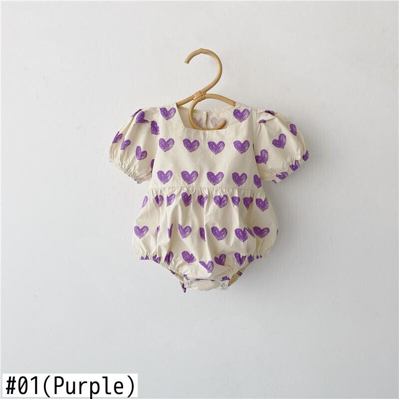 サマー半袖スリーブロンパース オールインワン イエローハートパターン ショート コットン ハーフスリーブ 夏物 キッズ パープル スクウェア mi5316202298343