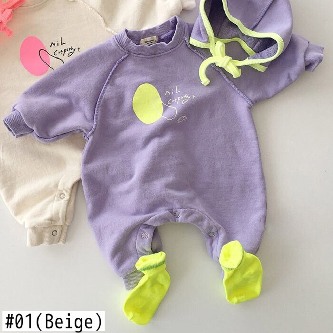 オータムプリント柄長袖スリーブロンパース オールインワン ルーズ ロング 帽子 秋物 mi5393740453000