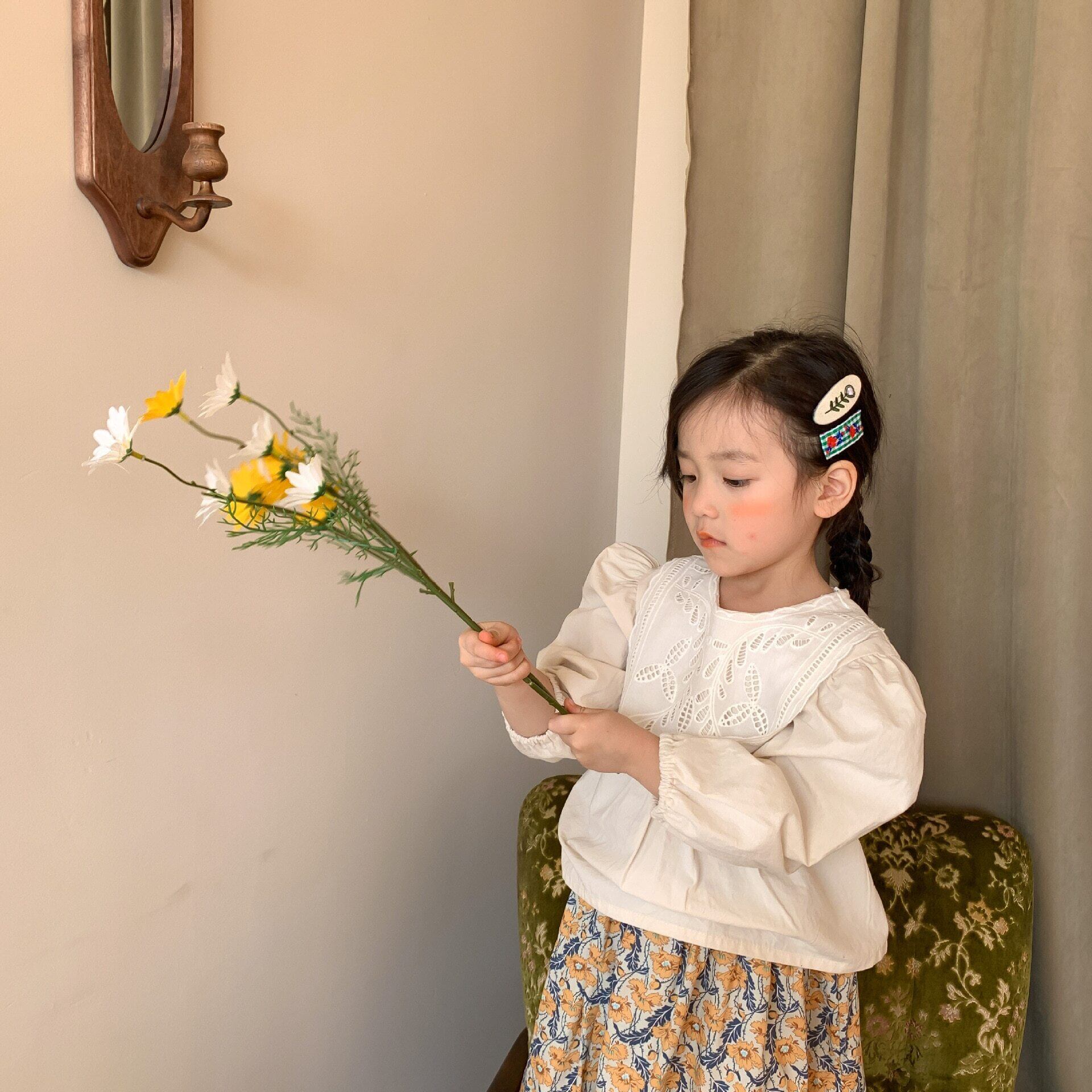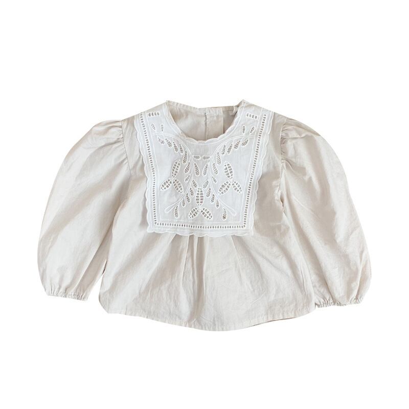 ブラウス ホワイトシャツレーススプリング長袖スリーブOネックトップス ロング コットン 春物 キッズ mi5356531778099