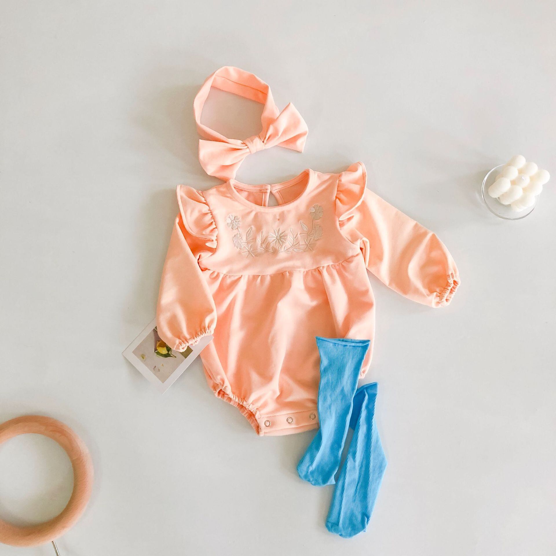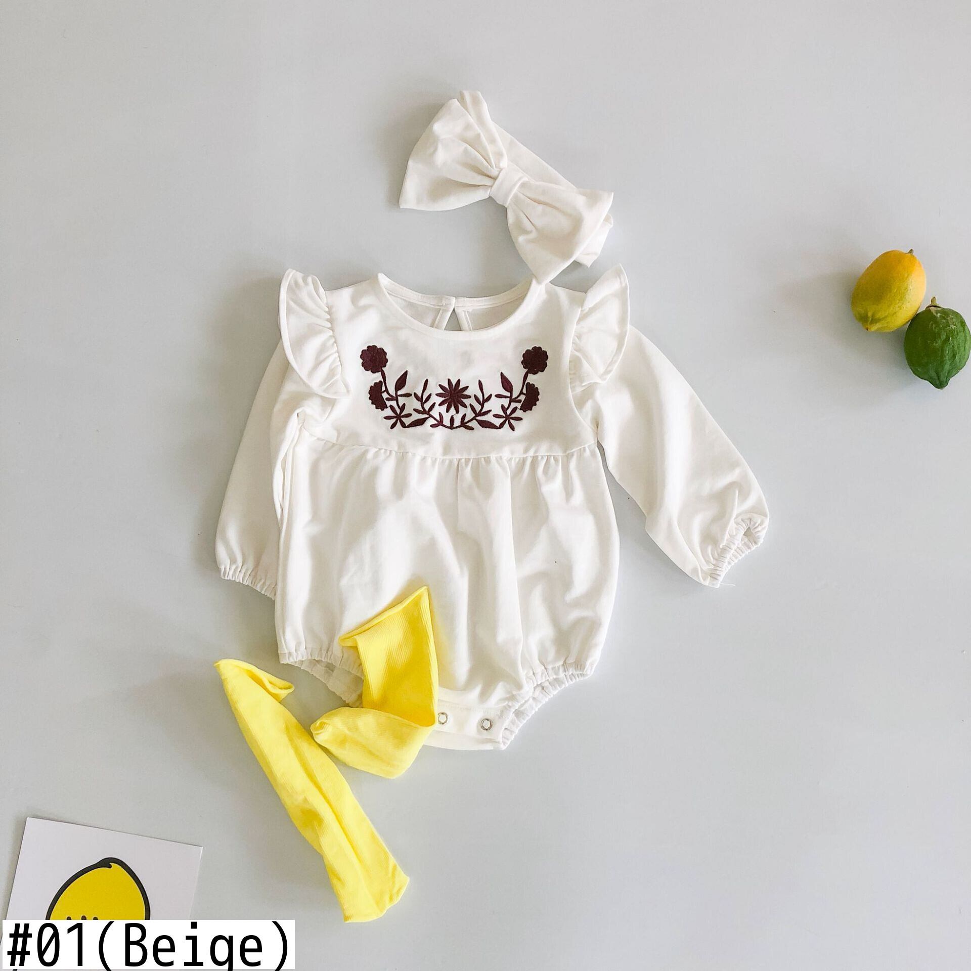 Flowerデザイン 刺繍長袖スリーブジャンプスーツ オールインワン ヘアバンド オータム ロング 秋物 キッズ ヘアアクセサリー フラワーデザイン mi5328996886386