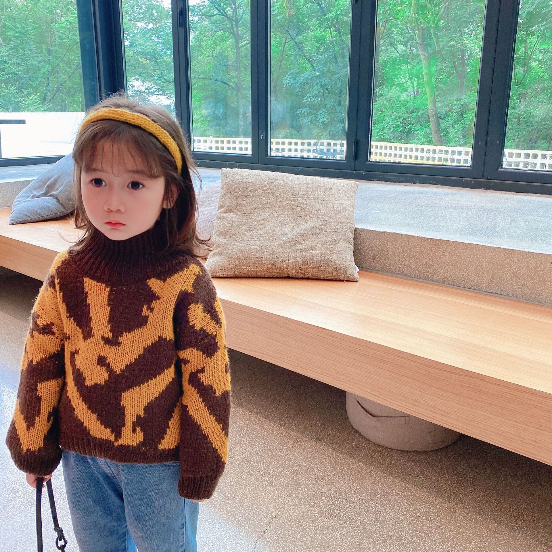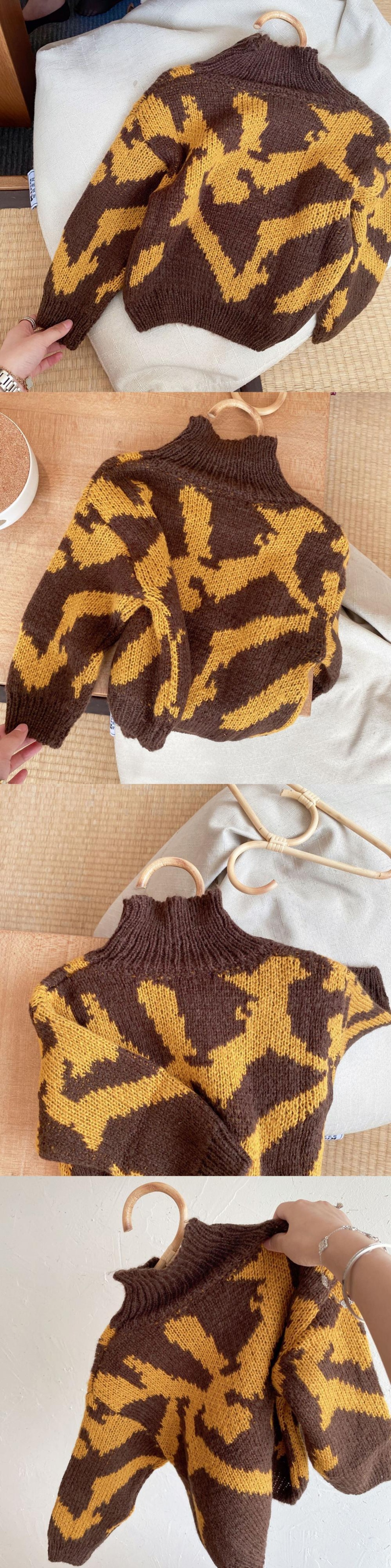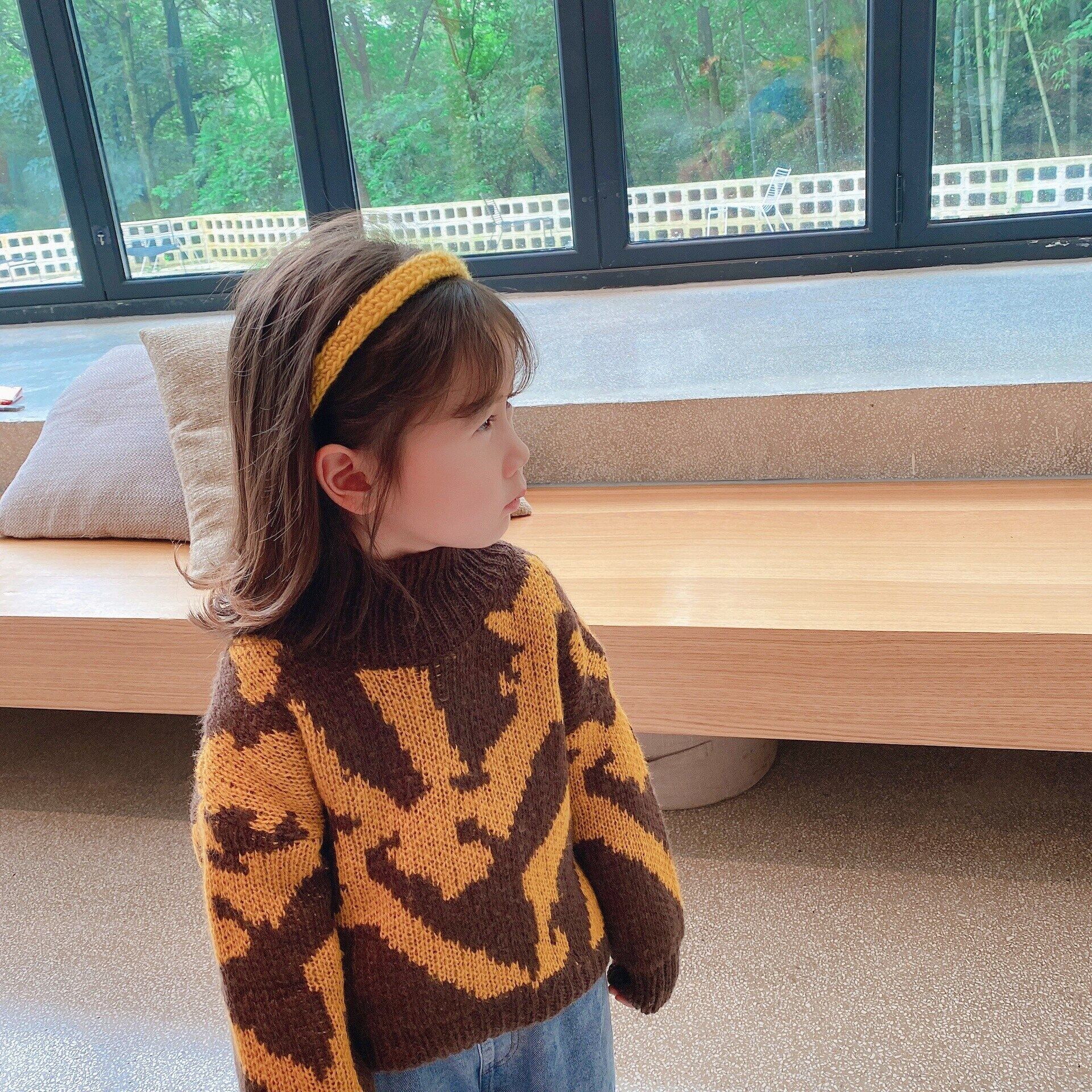 長袖スリーブニットレオパードプリント柄プルオーバー セーター オータムウィンタートップス ロング 秋物 冬物 キッズ mi5330915160808