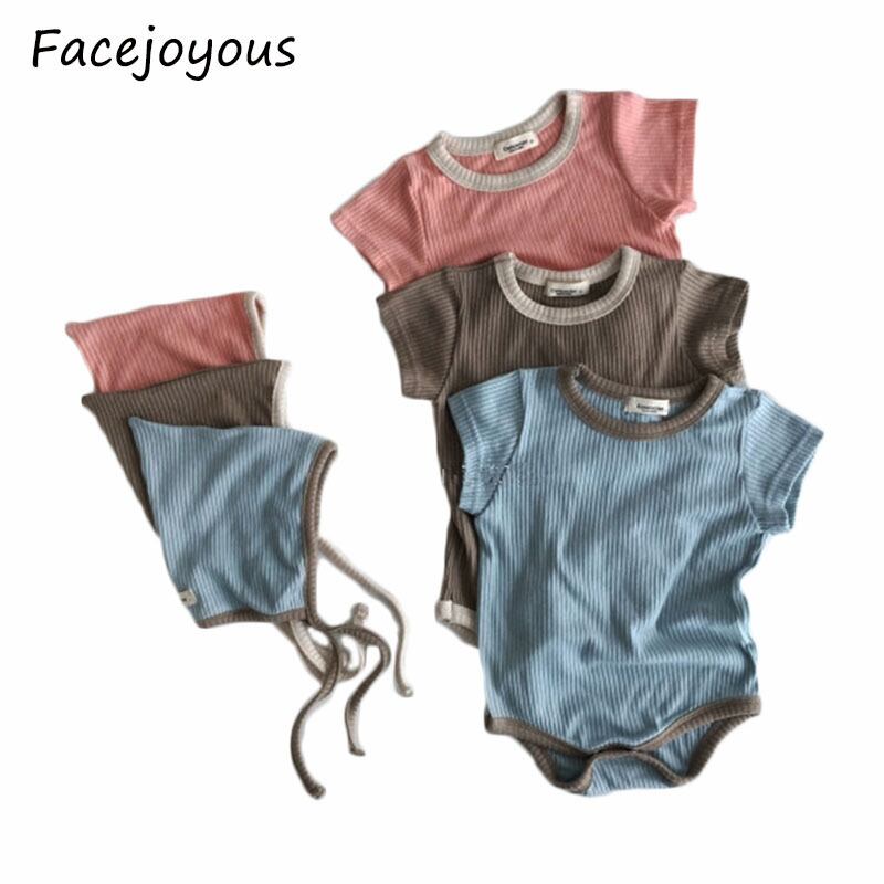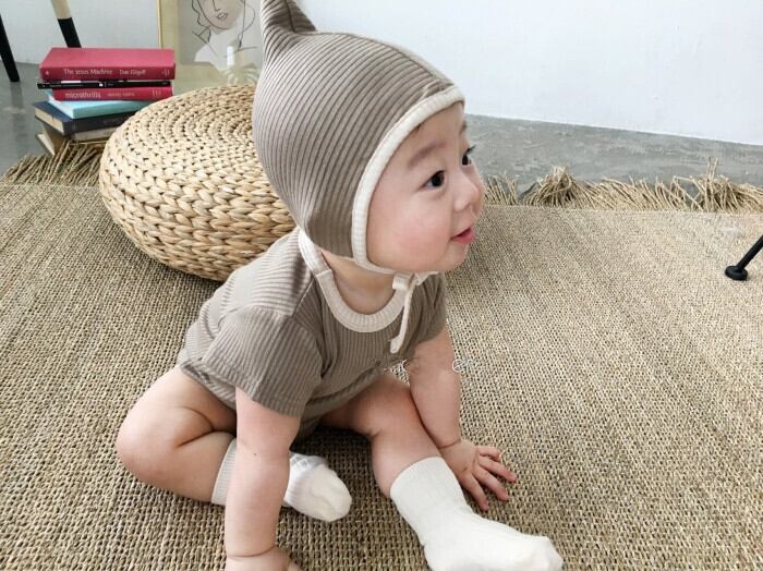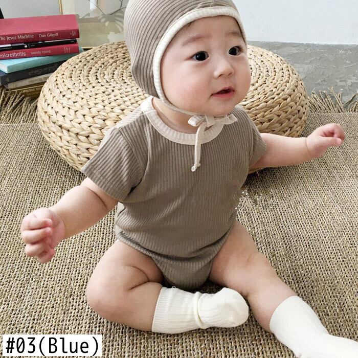 サマーリブ半袖スリーブジャンプスーツ オールインワン セット ショート 帽子 ハーフスリーブ 夏物 mi5377834732464