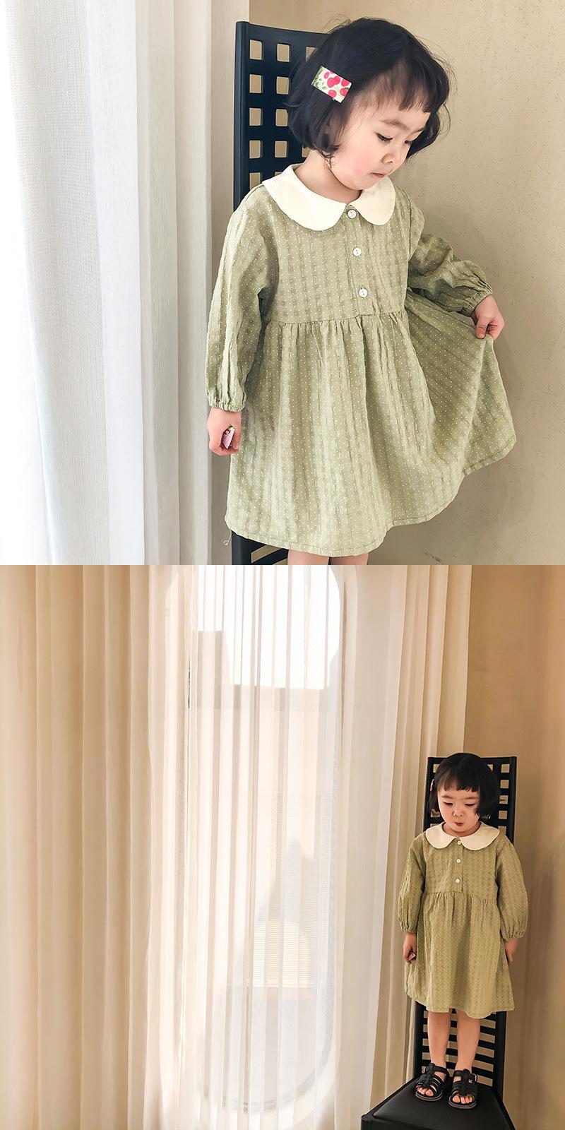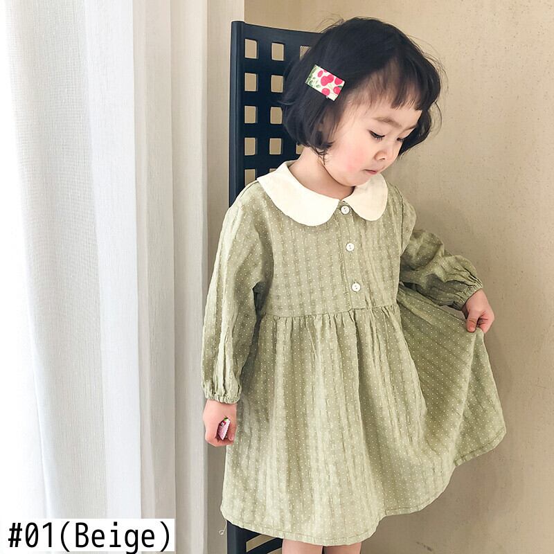 スプリング長袖スリーブプリント柄ドレス カラードレス ワンピース ロング コットン 春物 キッズ mi5385976320903