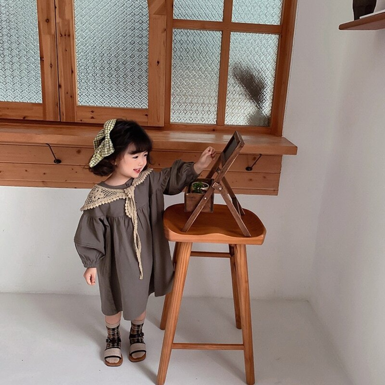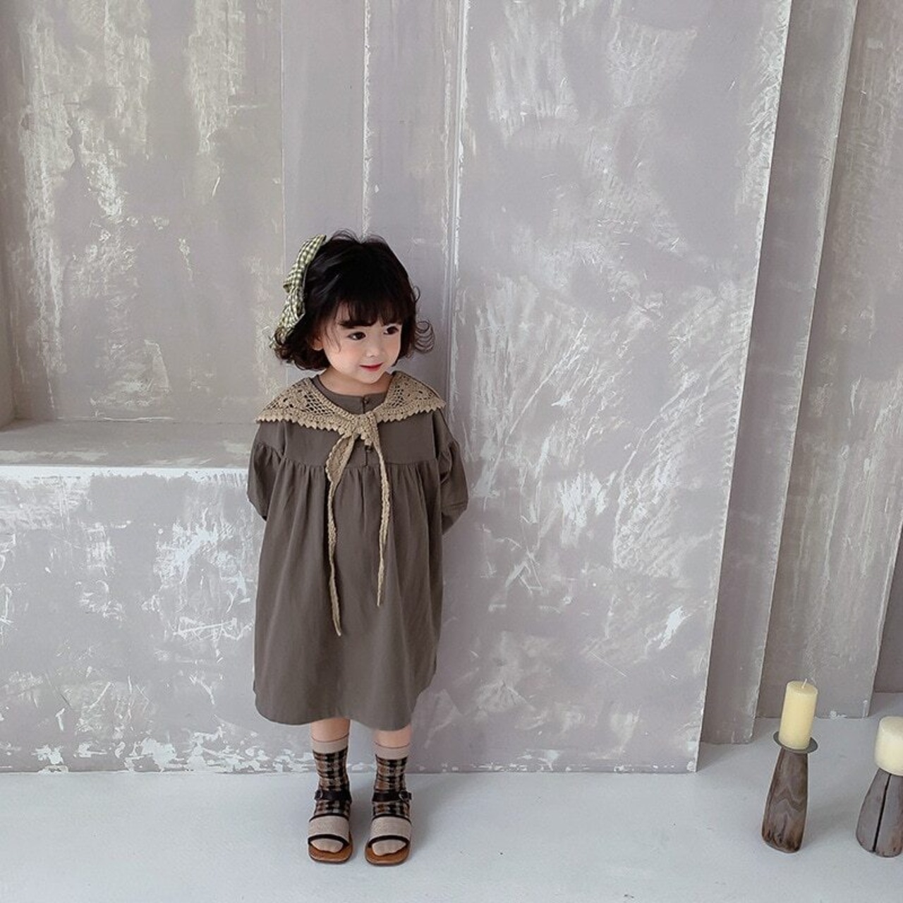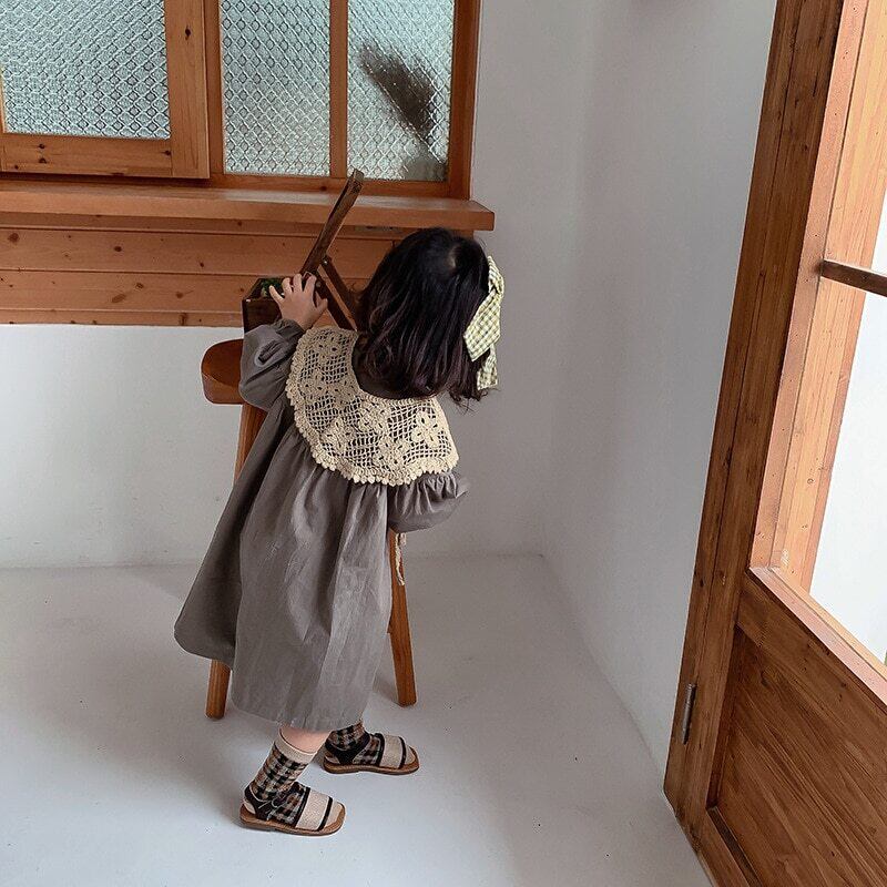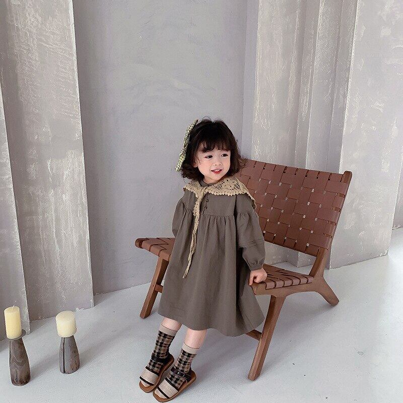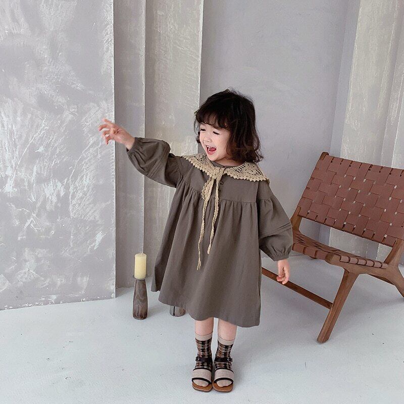 スプリングドレス ワンピース レースカラー長袖スリーブ ロング 春物 キッズ mi533255809138