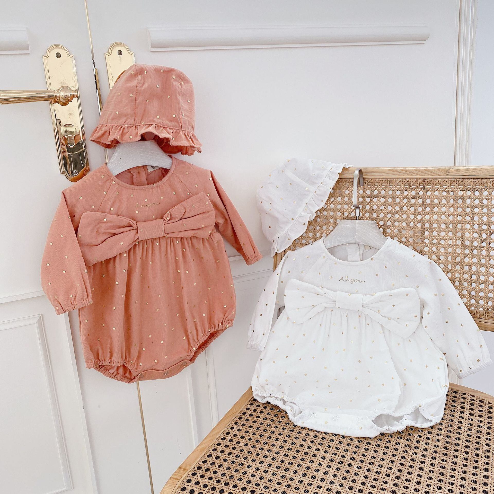 長袖スリーブジャンプスーツ オールインワン ロング リボン コットン 帽子 大人ガーリー スウィート キュート カジュアル mi534622746613