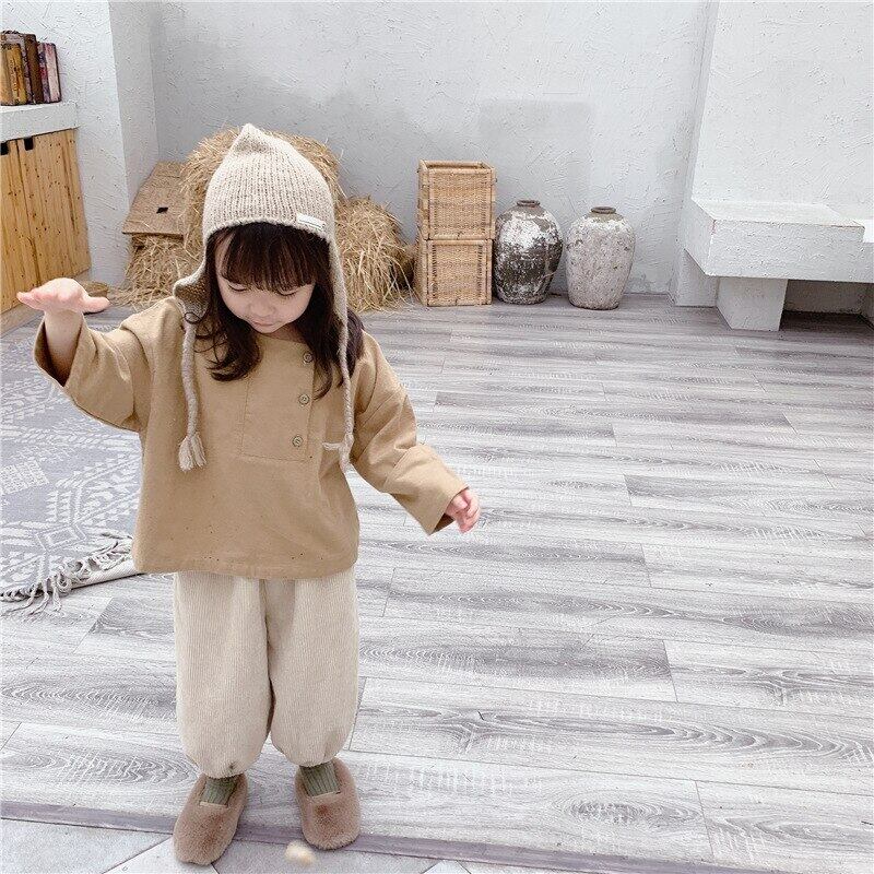 ブラウス オータム長袖スリーブトップス ベーシックシャツ ロング コットン 秋物 キッズ mi5372320198754