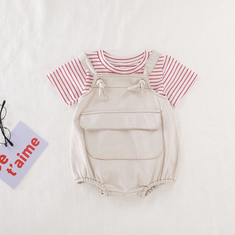 サマーセット 半袖スリーブストライプTシャツ シャツ ポケットジャンプスーツ オールインワン ショート ハーフスリーブ 夏物 キッズ mi5377701049111