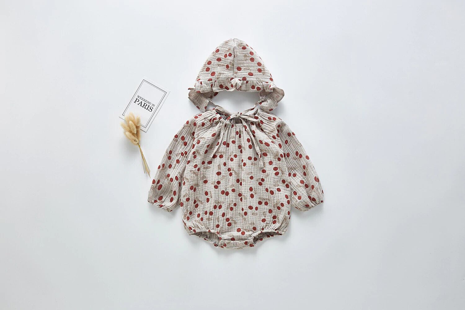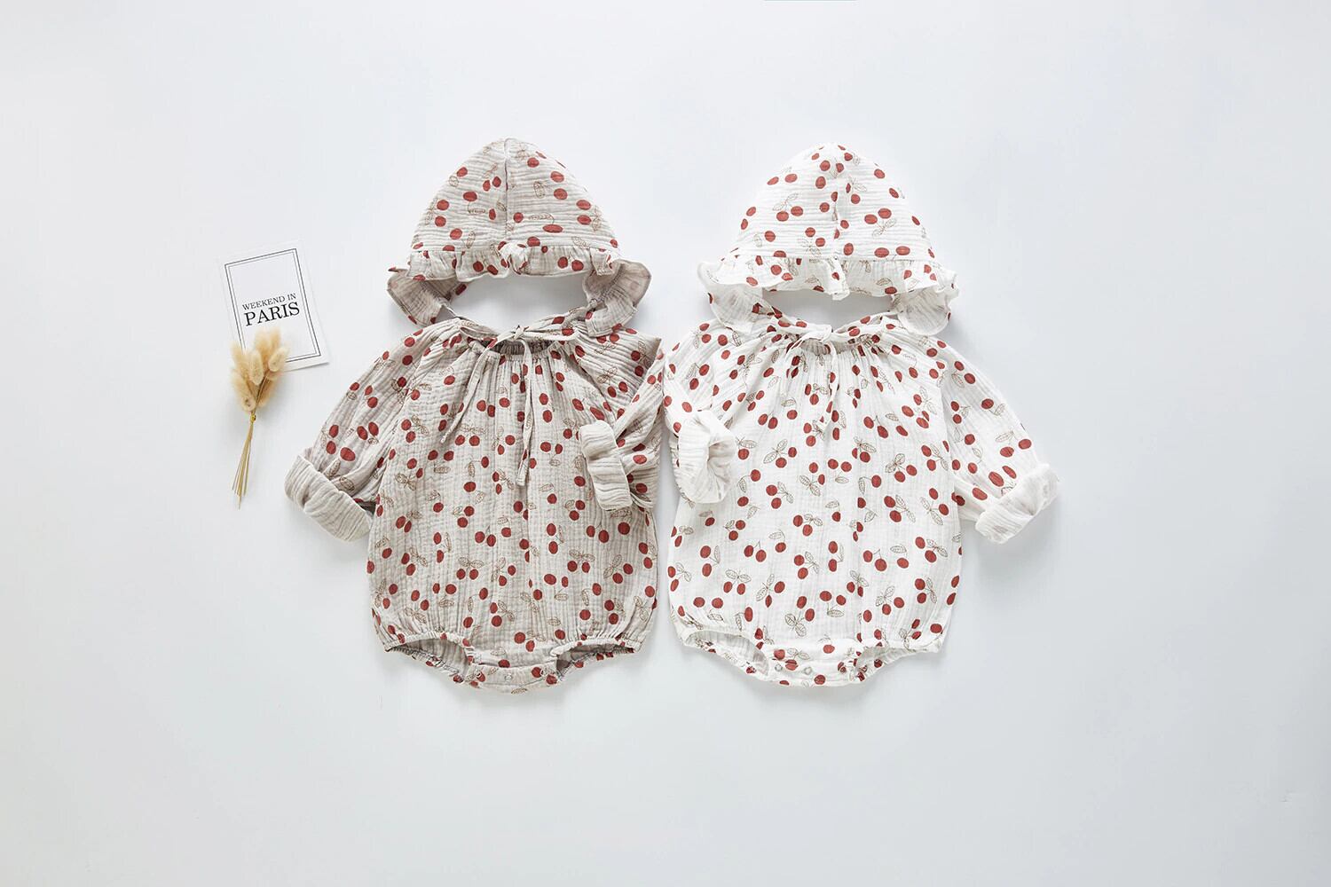 ロンパース オールインワン プリント柄スプリングジャンプスーツ オールインワン コットン 帽子 春物 mi535388967723