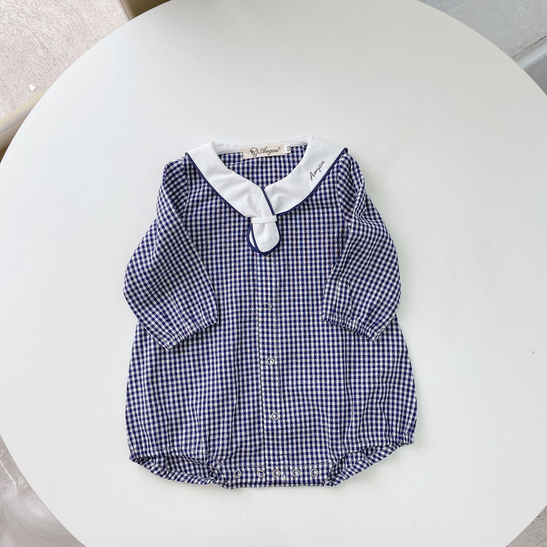 格子柄長袖スリーブジャンプスーツ オールインワン スプリング ロング コットン 春物 mi5376777991605