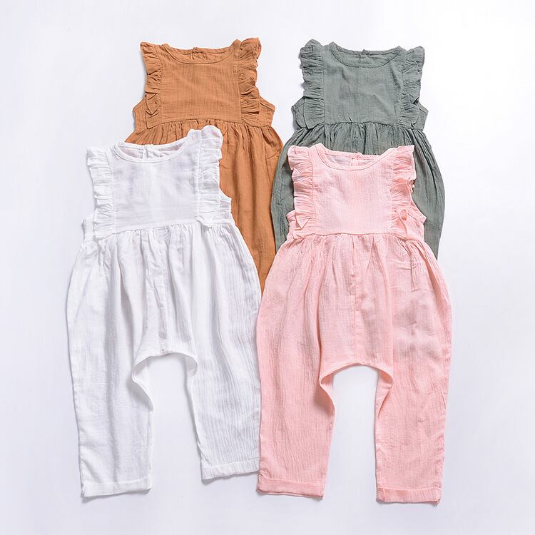 ロンパース オールインワン ソリッド カラーフリルノースリーブジャンプスーツ オールインワン コットン ラッフル キッズ ソリッドカラー mi5367221667203