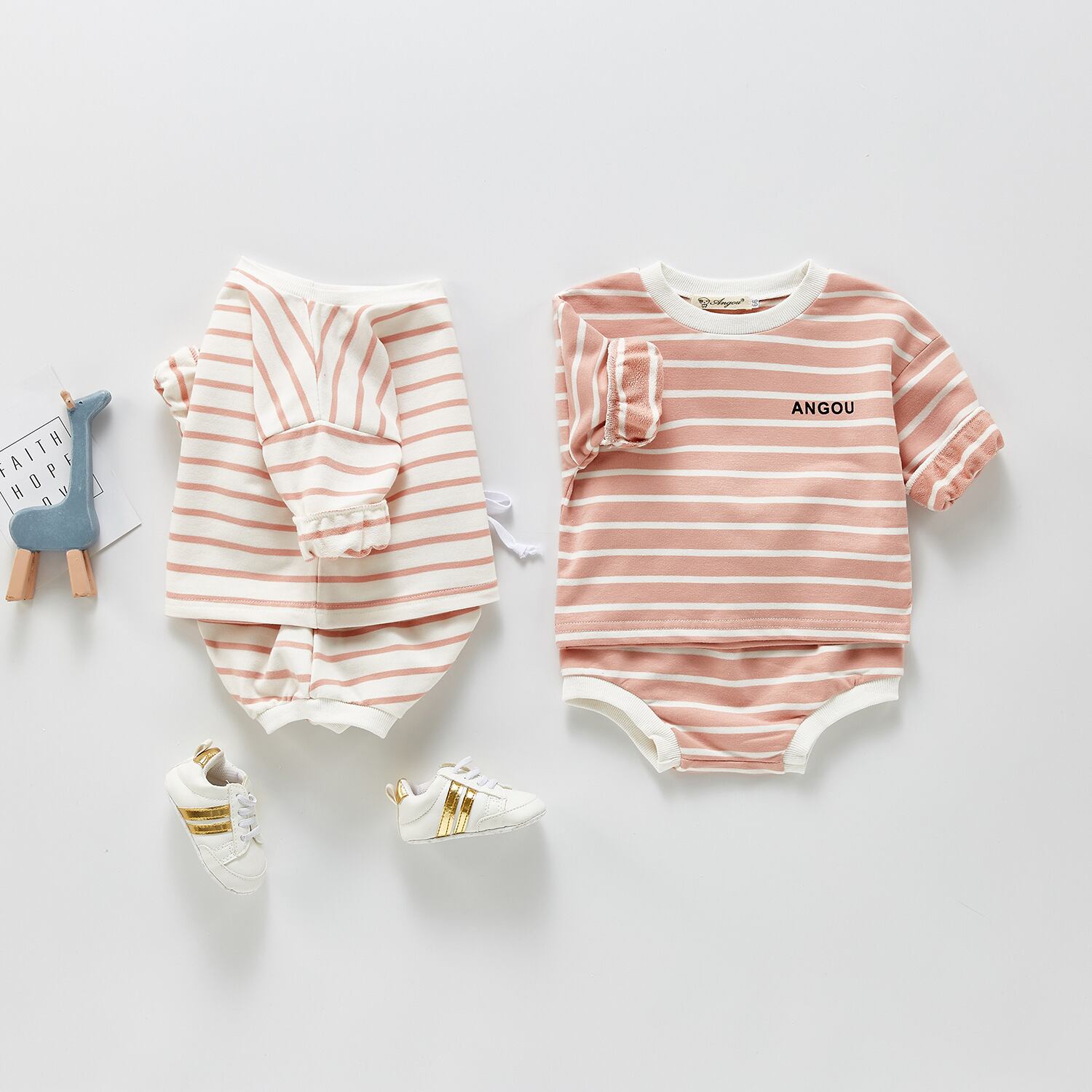 スプリングストライプセット 長袖スリーブトップス ショーツ ロング 春物 ブルマー mi5345473626720