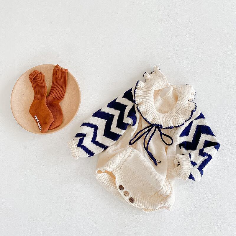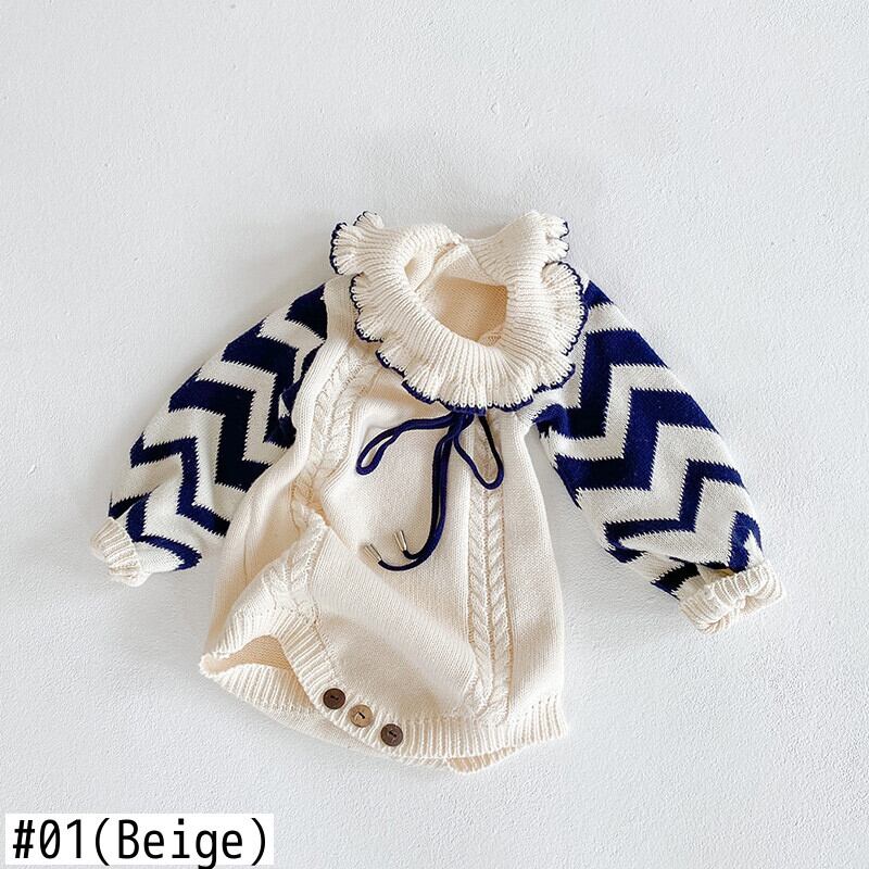 ウェーブストライプジャンプスーツ オールインワン ニット コットン ピュア mi5333532729638