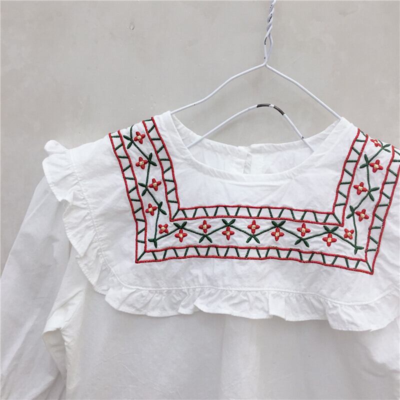 スプリングブラウス カラー刺繍ソリッド 春物 ソリッドカラー mi5353970205535