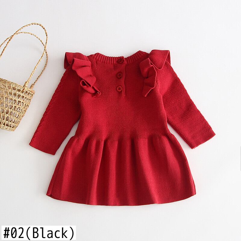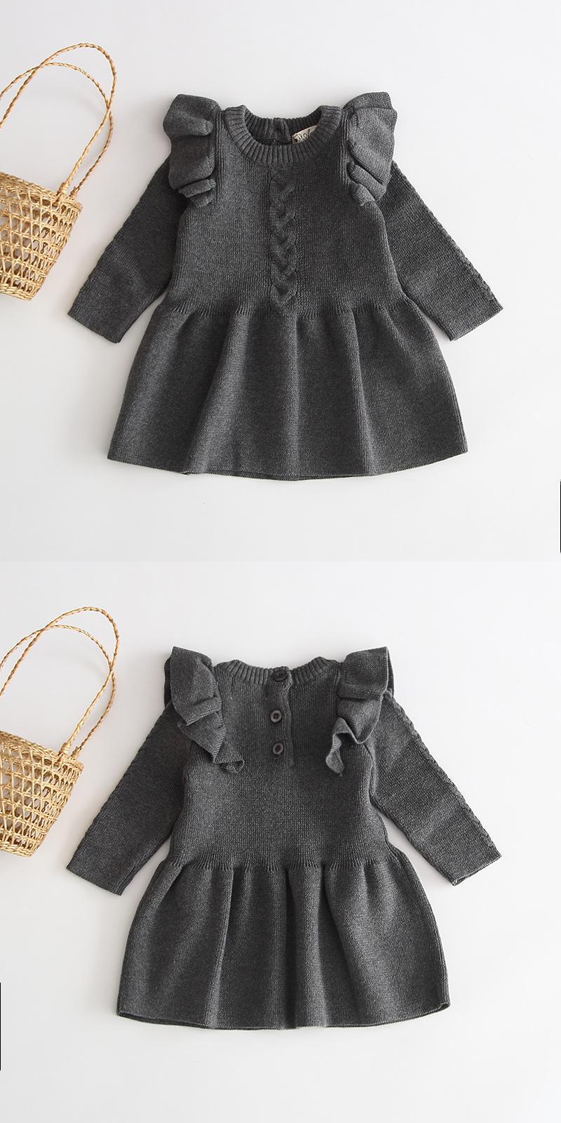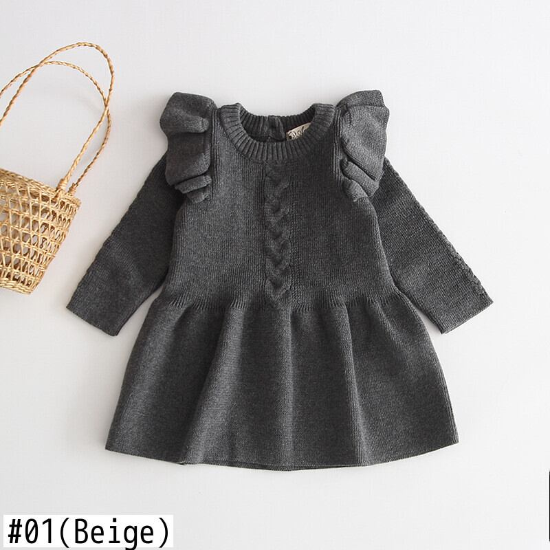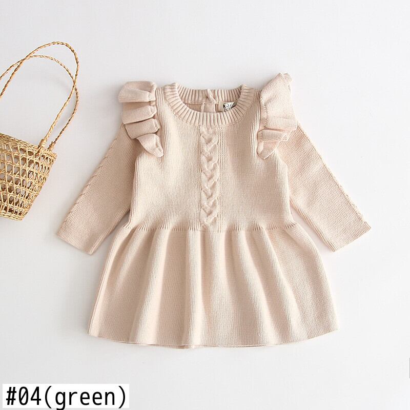 スプリングドレス ラッフルスリーブニットソリッド ドレス ワンピース 春物 ソリッドカラー mi536923802836